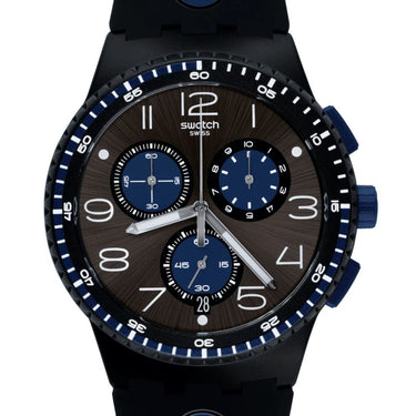 L’orologio KAICCO (SUSB406) si distingue per il quadrante nero spazzolato soleil con stampe in bianco, blu e nero, e per gli indici numerici. Tre contatori e il datario alle ore 6 lo rendono funzionale e moderno. La ghiera è realizzata in nero intenso opaco con stampe multicolore, la cassa in nero opaco. Il cinturino nero è valorizzato da elementi blu brillante per un effetto grafico del tessuto.