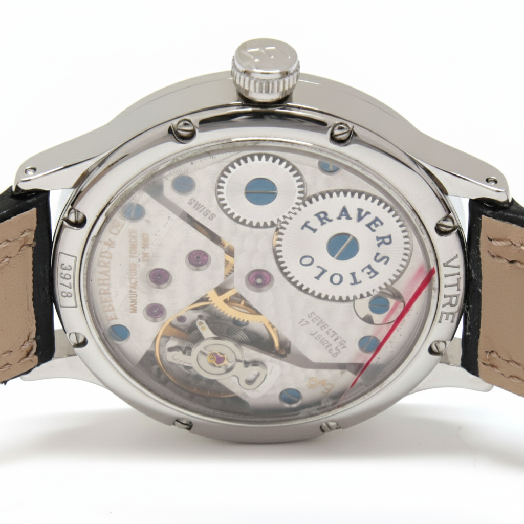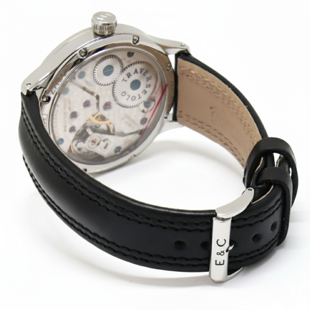 SCALA DEI MINUTI NERA CON LAVORAZIONE. CONTATORE DEI SECONDI CON PROFILO NERO.