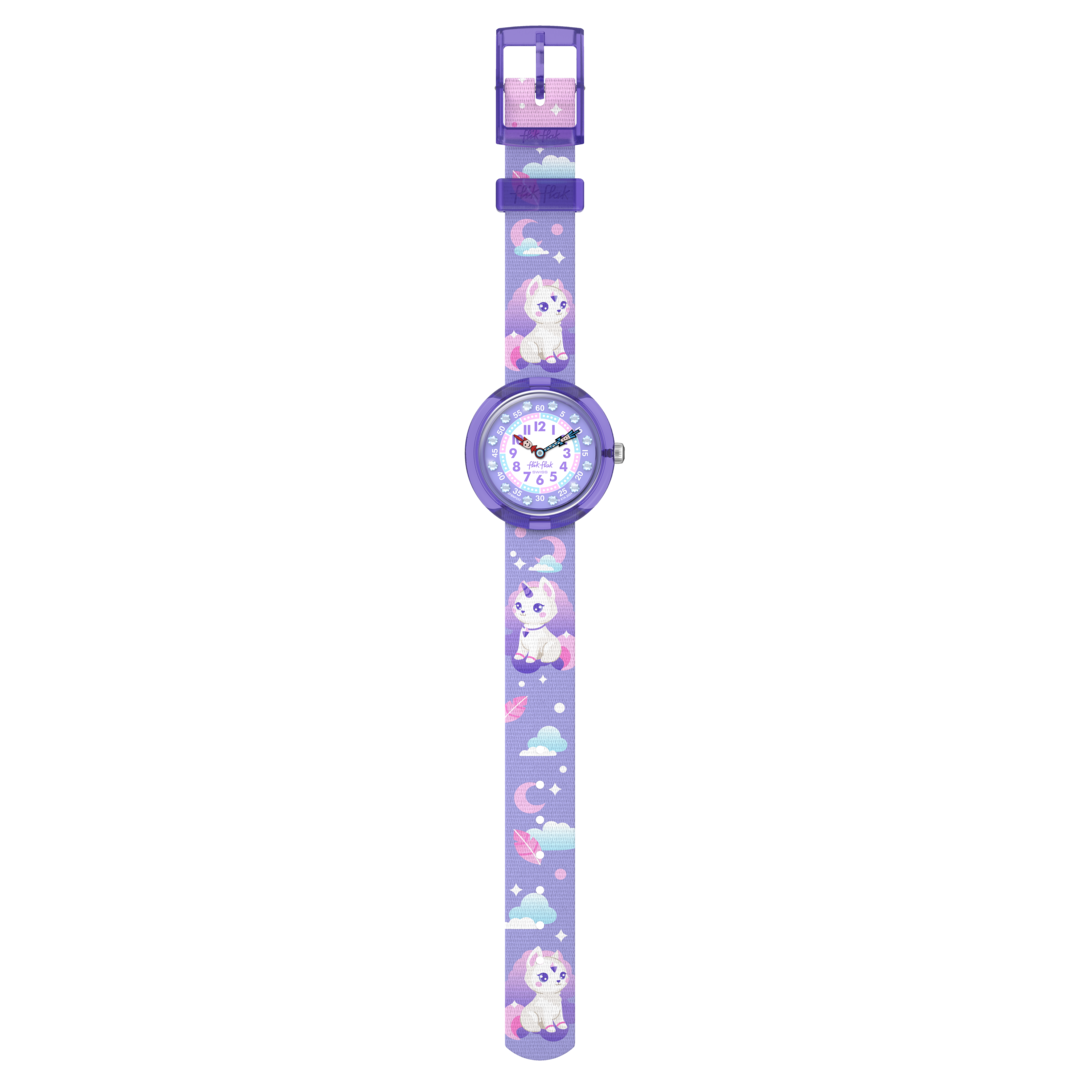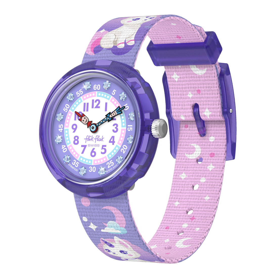 Il magico orologio educativo per bambini COSMICAT è caratterizzato da un gattino unicorno circondato da un cielo viola e soffici nuvole di zucchero filato. Illuminato da cristalli, questo orologio rende l'apprendimento dell’ora un momento di divertimento e magia. È l’idea regalo perfetta per i piccoli che amano il mondo delle favole!