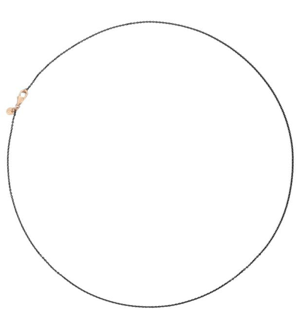 Catenina Dodo in argento, PVD nero e chiusura in oro rosa cm 50.