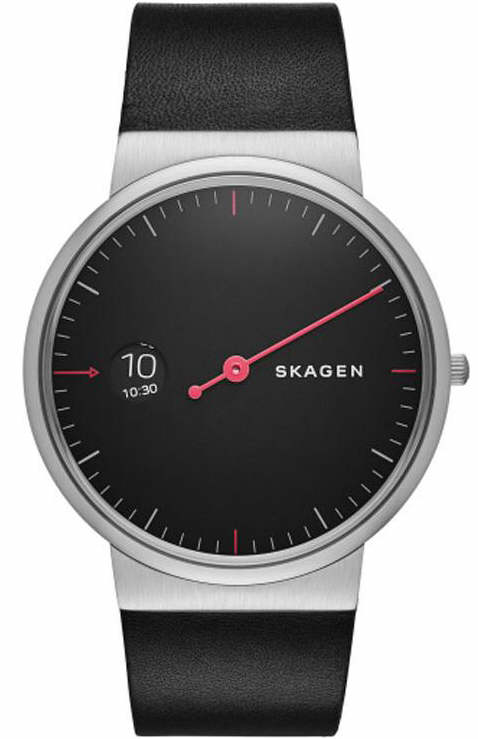 Lo Skagen SKW6236 è un orologio da uomo di tipo "solo tempo", con cassa in acciaio, quadrante nero e cinturino in pelle nera, caratterizzato da una lancetta dei minuti rossa e un movimento al quarzo.