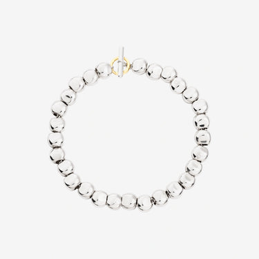 Bracciale pepita in argento 925, catena e t-bar in argento 925 e anello brisè in oro giallo 18K. Ago in argento 925 incluso.