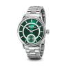 QUADRANTE VERDE CON LAVORAZIONE “SOLEIL” CON INDICI APPLICATI, RODIATI, BOMBATI, SCAVATI CON SUPERLUMINOVA BIANCO. SCALA DEI MINUTI BIANCA CON LAVORAZIONE “AZURÉ”. CONTATORE DEI SECONDI VERDE CON LAVORAZIONE “AZURÉ” E PROFILO BIANCO CON LAVORAZIONE “AZURÉ”.