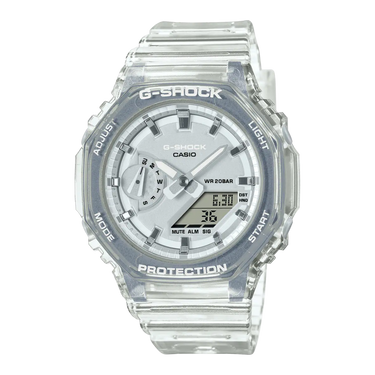 Tuffati in un esperienza di puro piacere metallico con l'iconica combinazione di analogico-digitale del GA-2100 in un profilo più sottile e compatto. Design traslucido metallico in una scelta di colori per orologi versatili che si abbinano a qualsiasi outfit, tutto l'anno. Gli indici sull'orologio, trattati con una finitura a deposizione da vapore semi-opaca, gli conferiscono un look trasparente e metallico.