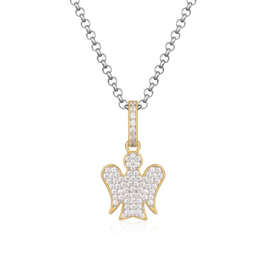Collana con pendente Angelo in argento bianco e giallo e zirconi bianchi.