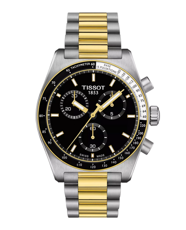 Il cronografo al quarzo Tissot PR516: una versione contemporanea di un amato design del 1970. Questo orologio presenta un'elegante cassa in acciaio inossidabile da 40 mm e un quadrante dinamico, che incarna lo spirito di velocità e precisione. Dotato del movimento Quartz G10.212 Powerdrive, offre una precisione senza pari per uno stile di vita attivo. La lunetta è dotata di un pratico tachimetro, mentre gli indici rivestiti in Super-LumiNova®️ garantiscono visibilità in tutte le condizioni. Il suo design versatile è completato da un bracciale bombato in acciaio inossidabile bicolore con un sistema di intercambiabilità rapida, perfetto per il passaggio dalle riunioni di lavoro alle gite informali. Il cronografo al quarzo PR516 è un classico moderno, che si fonde con la ricca eredità di Tissot.