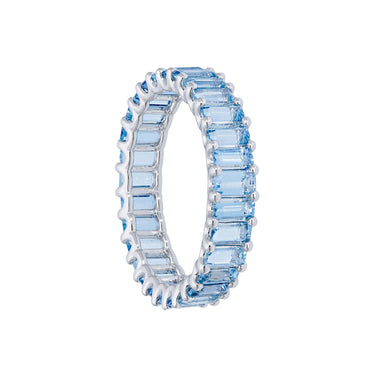 Elegante anello in Oro Bianco 18kt impreziosito con selezionate Acquamarine naturali taglio Baguette.