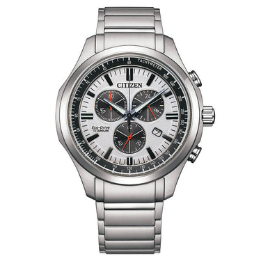 Orologio Chronografo da uomo Citizen della collezione Super Titanio, cassa in Titanio ultraleggero da 43mm di diametro, cinturino in Titanio satinato. Il movimento sfrutta la tecnologia Eco-Drive, cattura l'energia della luce grazie a speciali celle solari ad elevato assorbimento e la trasforma in energia cinetica alimentando così il movimento dell'orologio con una riserva di carica di mesi e non necessita mai del cambio pila. L'Orologio è water resistant fino a 10 ATM e verrà spedito nella confezione originale con la garanzia ufficiale Citizen internazionale.