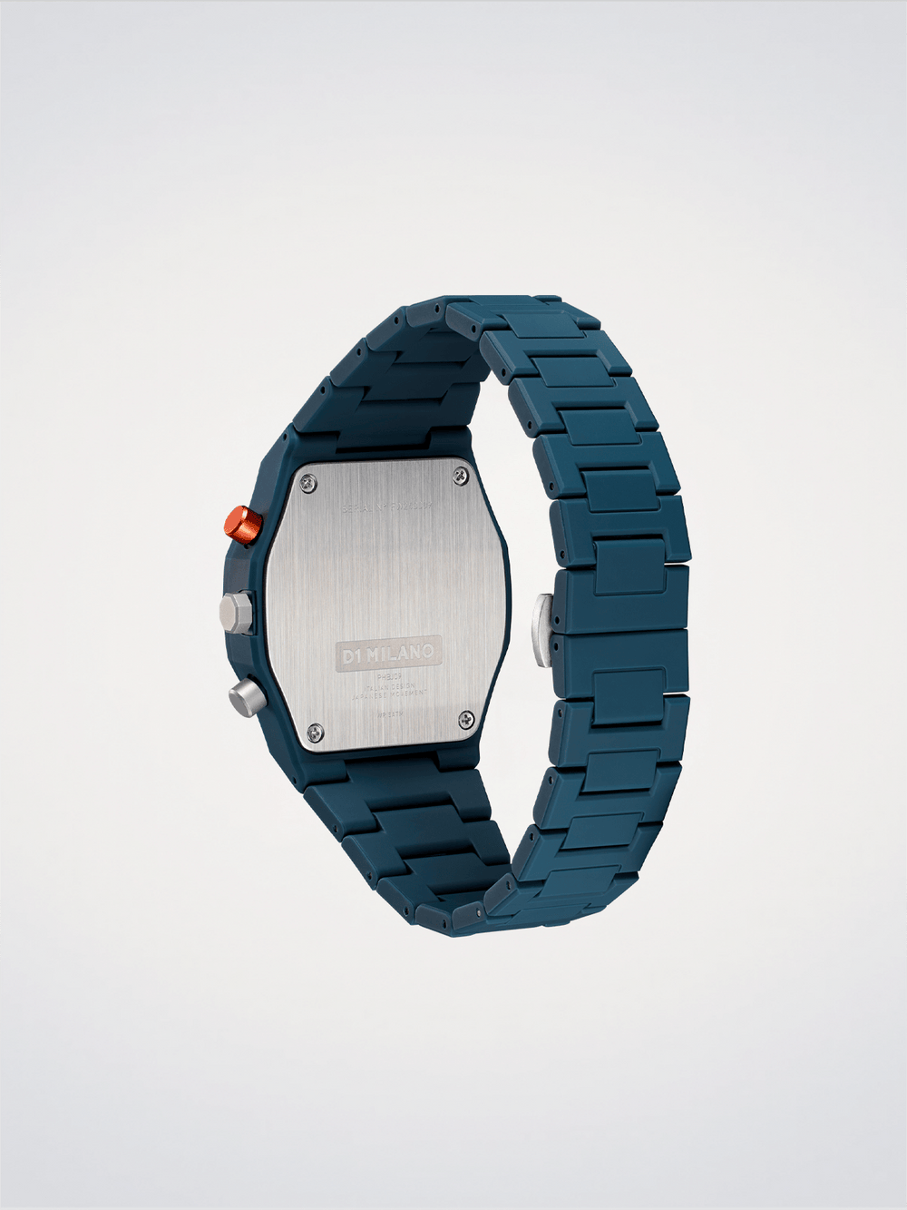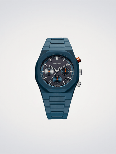 Quadrante Blu opaco con quadranti secondari blu soleil e dettagli arancioni