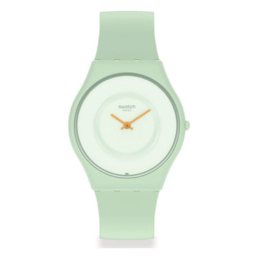Il vetro di origine biologica e la stampa nera caratterizzano il quadrante di questo SKIN CLASSIC BIOCERAMIC, un orologio sottile color Verde. Una robusta cassa BIOCERAMIC di colore Verde spicca su un cinturino e un passante a loro volta robusti e di color Verde opaco, di origine biologica e con fibbia in plastica.