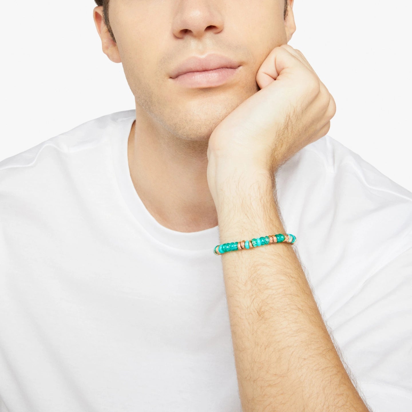 Bracciale Rondelle in argento dorato oro rosa 18K e plastica riciclata, catena e t-bar in argento 925, anello brisè in acciaio
