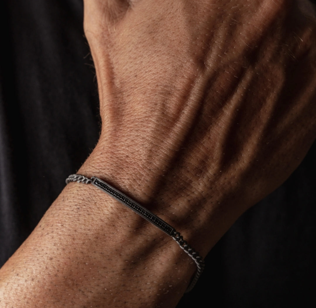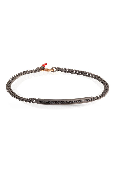 MANO J BRACCIALE UOMO IN TITANIO CON BARRETTA, DIAMANTI BLACK CON UNA CATENA GROUMETTE E ORO ROSSO 9KT