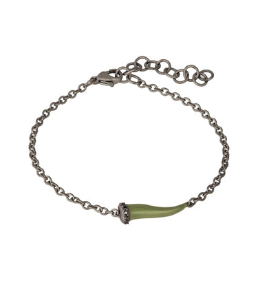 ManoJ Bracciale Corno Diamanti neri e smalto verde Militare