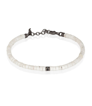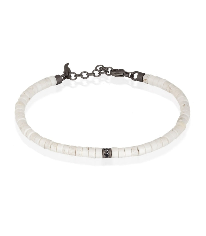 ManoJ Bracciale Titanio Howlite e Diamanti neri