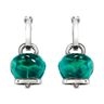 Orecchini Et Voilà Campanella medi, con resina sfaccettata a mano color verde Paraiba su argento e due diamanti taglio brillante