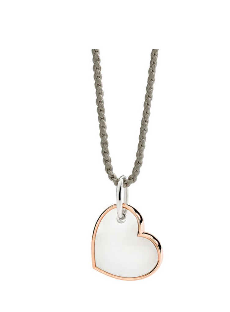 Ciondolo XL cuore in argento 925 e dettaglio profilo in oro rosa 9k. Cordino in seta torchon incluso.