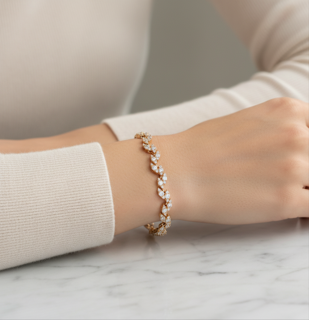 Bracciale Foglie in Oro rosa 18kt con Diamanti naturale taglio brillante.