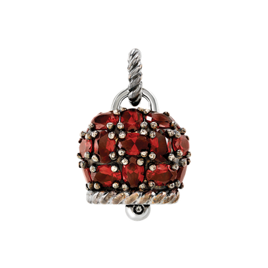 Ciondolo Et Voilà Campanella grande con siamiti rosso rubino taglio ovale incastonate a griffe su argento brunito e un diamante taglio brillante