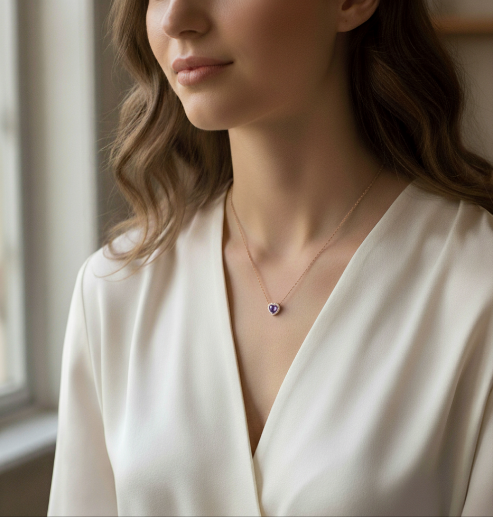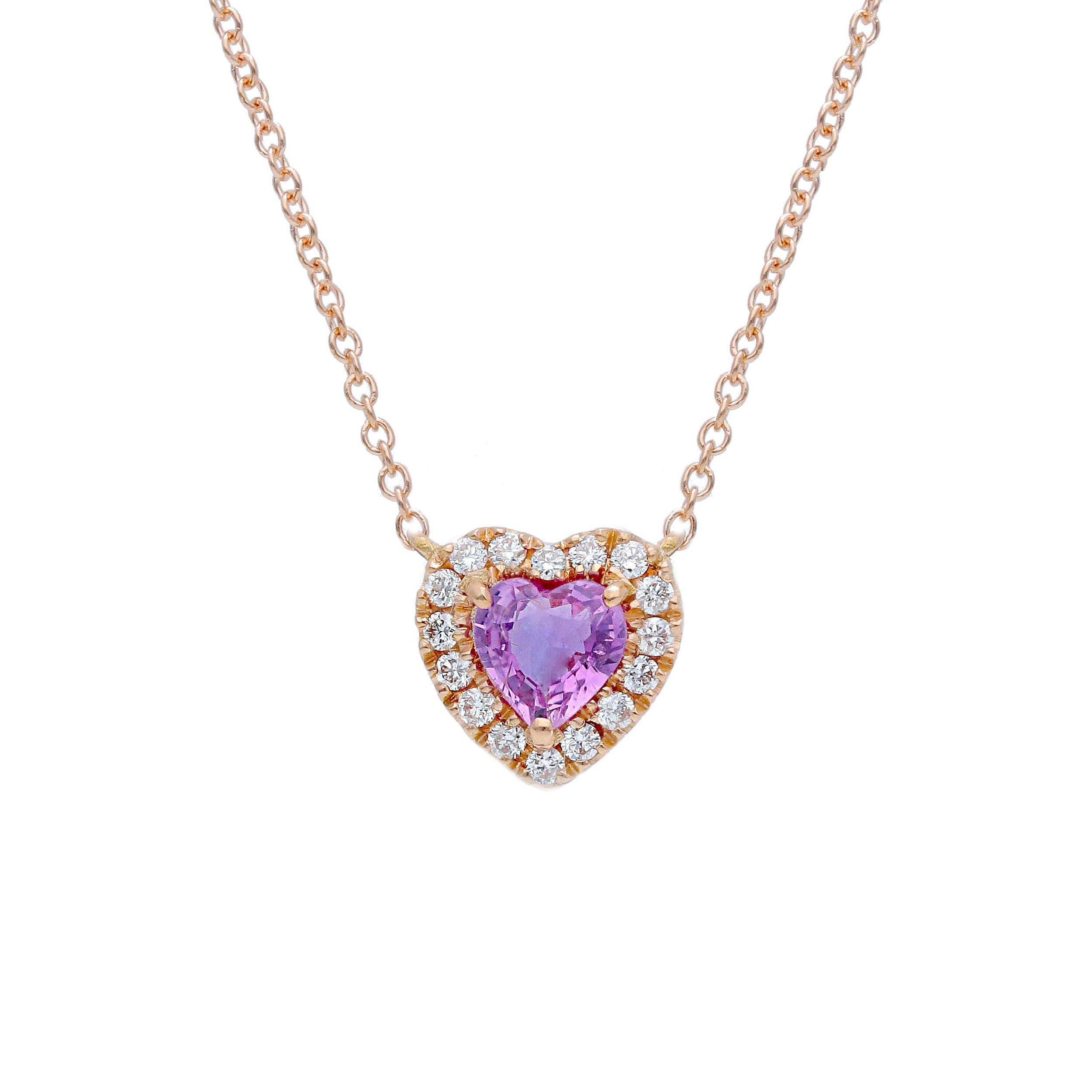 Girocollo in Oro rosa 18kt con Zaffiro rosa naturale taglio cuore e Diamanti naturali taglio brillante.