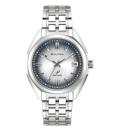 Orologio Bulova della collezione Classic Jet Star. Cassa in acciaio da 40 mm con dalle sfaccettature angolari e finiture lucide-satinate. Il quadrate con raffinata lavorazione soleil degrada dall'argento brillante al grigio antracite. Movimento Precisionist al quarzo con 8 rubini, creando precisione assoluta. Bracciale multimaglia con chiusura deployante. Vetro Zaffiro e impermeabilità fino a 5 atm.