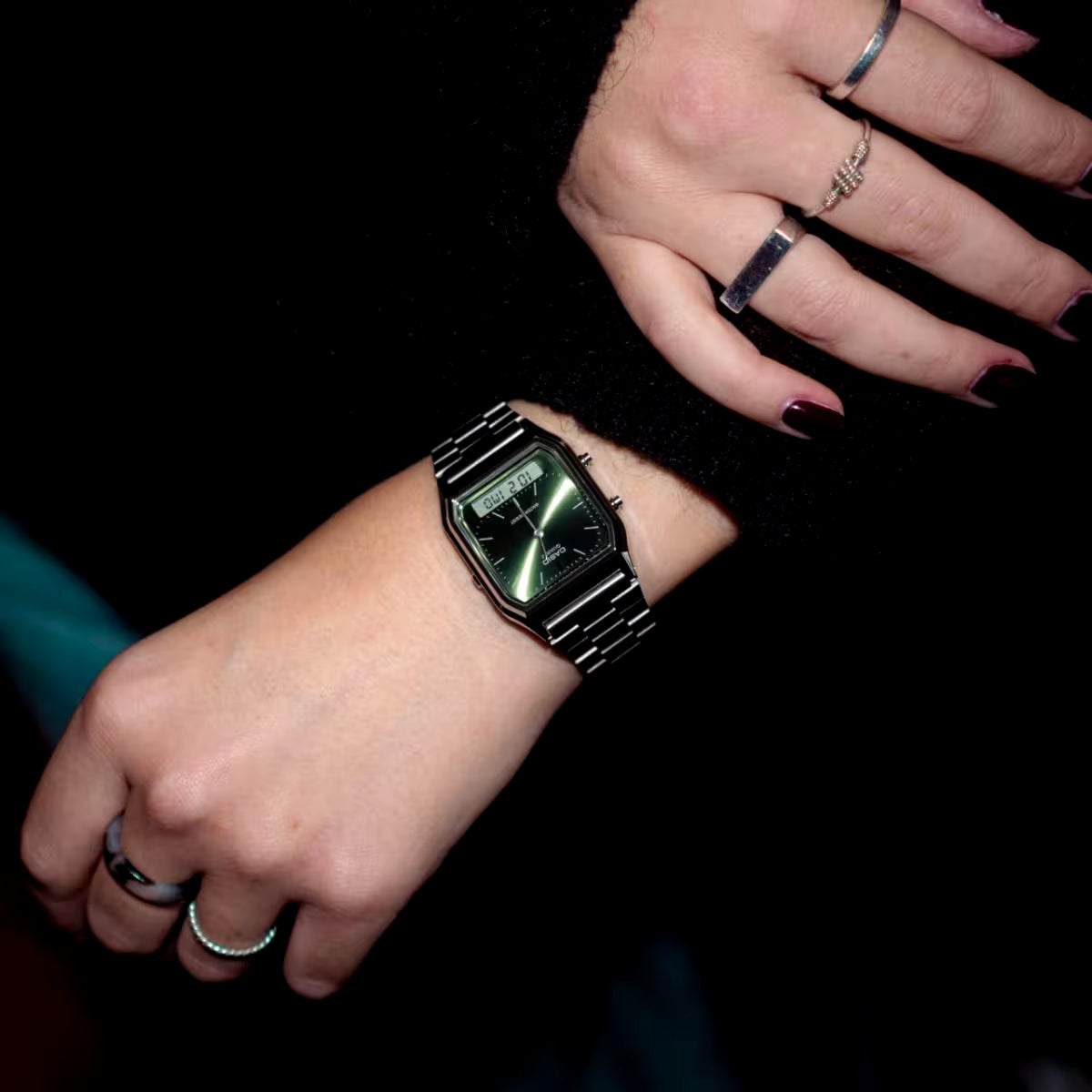 La classica combinazione analogico-digitale è rivestita di splendide tonalità.