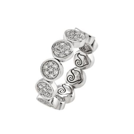 Anello veretta morbida Paillettes con diamanti taglio brillante incastonati a pavé, su oro bianco 18kt.