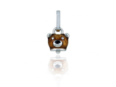 Ciondolo campanella micro orso in argento e smalto marrone chiaro