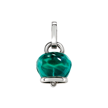 Ciondolo Et Voilà Campanella medio in argento, resina sfaccettata a mano color verde Paraiba e un diamante taglio brillante