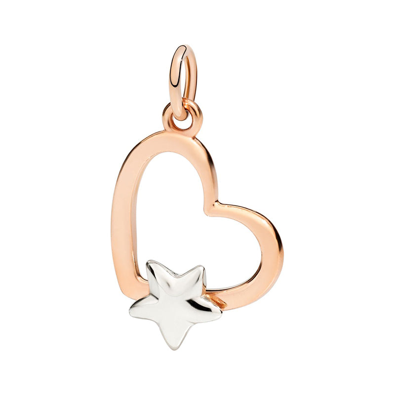 Ciondolo silhoette in oro rosa 9 kt con stella 3D in oro bianco 9 kt. Cordino nero incluso.