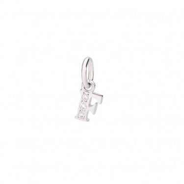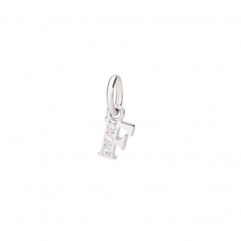 DoDo Ciondolo Lettera F In Oro Bianco Rodiato 18kt con 3 Diamanti Ct 0.025