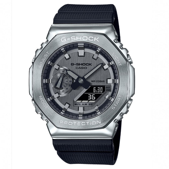 G-SHOCK, il brand di orologi indistruttibili, si evolve in un'infinita ricerca di estrema forza e resistenza. Sfoggia un look audace con al polso G-SHOCK: qui in versione ottagonale rivestita in metallo dal design iconico originale. Forgiata in acciaio inossidabile con finitura a linee sottili e taglio arrotondato, la lunetta robusta crea uno stile originale. Il quadrante è trattato con finitura a deposizione di vapore per un look metallizzato. Scegli il tuo colore preferito!