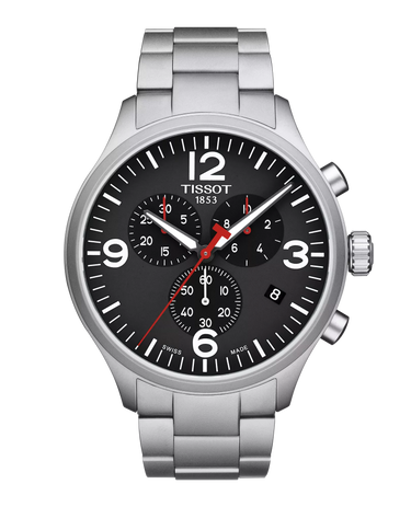 Il Tissot Chrono XL è uno dei cronografi più grandi (45 mm) della collezione Tissot. Questo cronografo sportivo offre, oltre alla tecnologia svizzera, una delle casse più grandi dell'intera collezione Tissot.